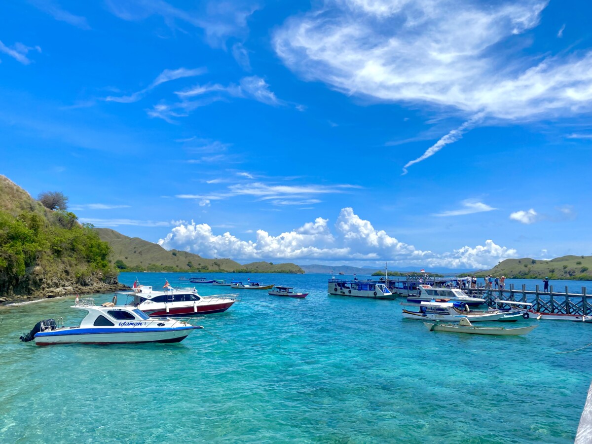 最後は、今回の島巡りのハイライト、世界自然遺産に登録されているコモド島へ上陸。秘境のリゾート地として人気のこの島には、世界最大のトカゲ、コモドオオトカゲが生息する。全長3メートルにもなり、成長するとコモドドラゴンと呼ばれる絶命危惧種だ。船からボートに乗り換えコモド島で降りるとすぐ、迎えてくれるようなコモドドラゴンの姿。その光景にツアーの人々のテンションも上がる。コモドドラゴンに出会えるトレッキングに参加するが、「1匹も見られない日もあります。血に敏感で獰猛なので、怪我をしている人は注意」とレンジャーにレクチャーを受けていたからだ。コモドナショナルパークへ入ると、さっそくつがいのコモドドラゴンに子ドラゴンがのんびり歩いている。目元が可愛く獰猛には見えない。