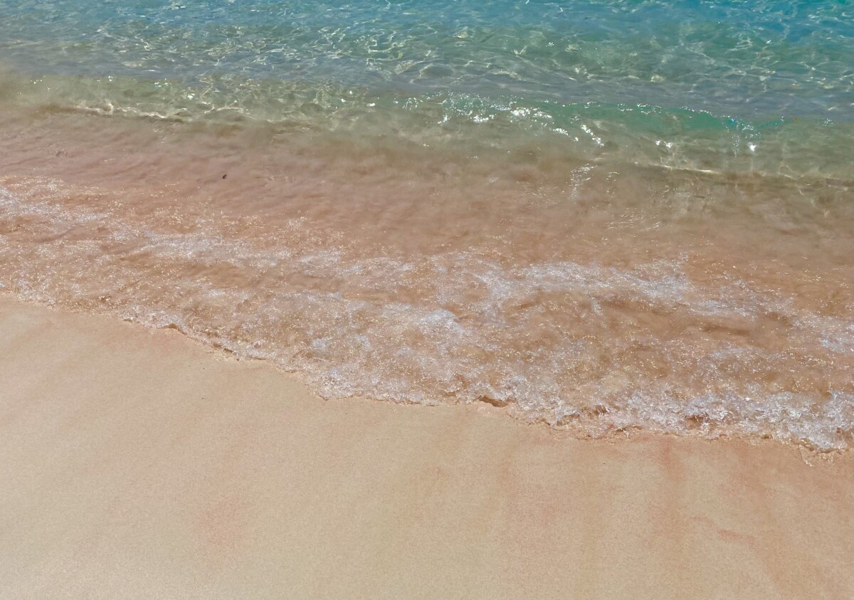島のビーチへは、小型ボートで向かう。透明度が高く、赤サンゴと白サンゴの破片が交じることによって生み出されるピンクの砂浜が美しい。ピンクビーチと名付けられ、シュノーケリングで魚たちと戯れるポイントとして人気だ。